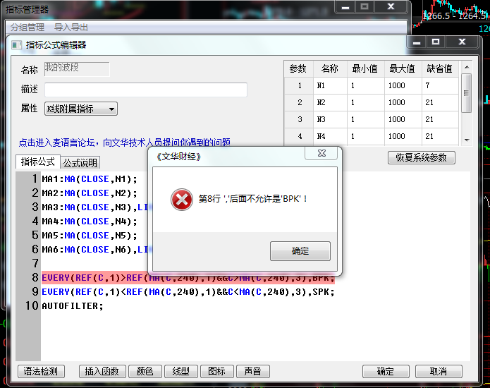 投资者咨询:同样的指标复制过来到另外一个wh6(模拟)为什么语法检测不通过? (文华财经WH6赢顺V6.7)