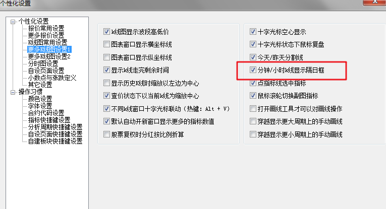 老师 ,分钟k线 ,历史的每天的起点指示能标识吗,类似图那样 (文华财经WH6赢顺V6.7)投资者咨询:老师 ,分钟k线 ,历史的每天的起点指示能标识吗,类似图那样 (文华财经WH6赢顺V6.7)来源:文华财经 日期:2018-8-31 14:05 技术人员回复日期:2018-8-31 14:20 图中的小竖线是今天/昨天分割线,标示的是当前交易日的起点 您想要在小周期区分交易日,可以在软件右上角》个性化》个性化设置》更多K线图设置1,如图勾选一下 您操作试下