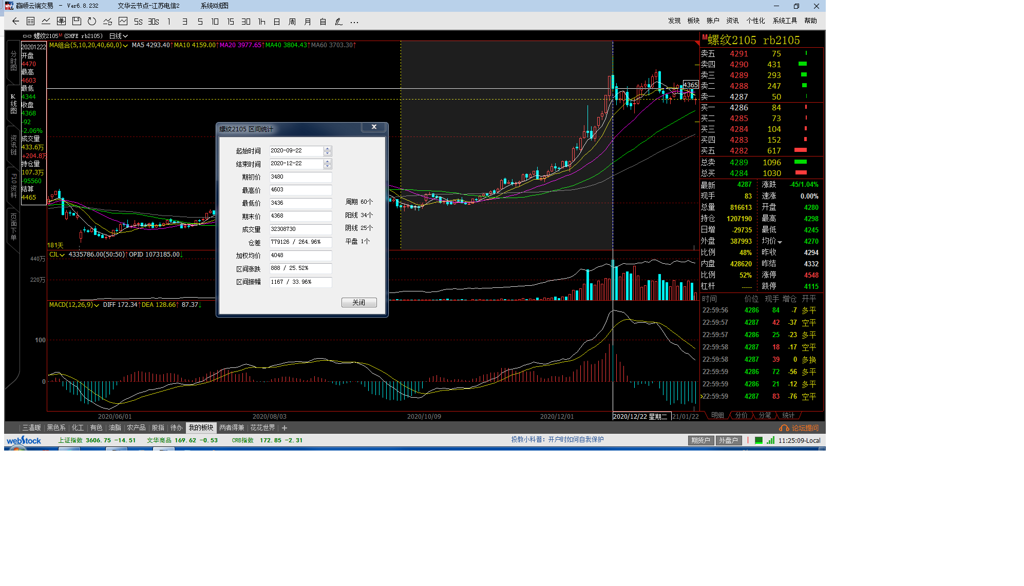 可不可以用光标位取到其他值 (文华财经)投资者咨询:可不可以用光标位取到其他值 (文华财经)来源:文华财经 日期:2021-1-24 11:28 请教老师,可不可以以光标所在K为基准取到前面的区间,比如,光标现在在图中某根K线上,能不能显示一个区间,该区间是自己定义的数值,例60,谢谢 文件名:无标题.png技术人员回复日期:2021-1-24 11:33 上面的用法,您使用区间统计的功能更方便。 如果周期是确定的话,具体说明下想要计算什么数值?涨跌?投资者咨询:可不可以用光标位取到其他值 (文华财经)来源:文华财经 日期:2021-1-24 11:28 区间统计还要自己去数K线根数,如果光标一点,自定义区间就能 出现,看区间形态更方便,谢谢投资者咨询:可不可以用光标位取到其他值 (文华财经)来源:文华财经 日期:2021-1-24 11:28 就是点下光标,自动数出光标前比如60根K线,出现条临时的竖线,光标消失,线也消失