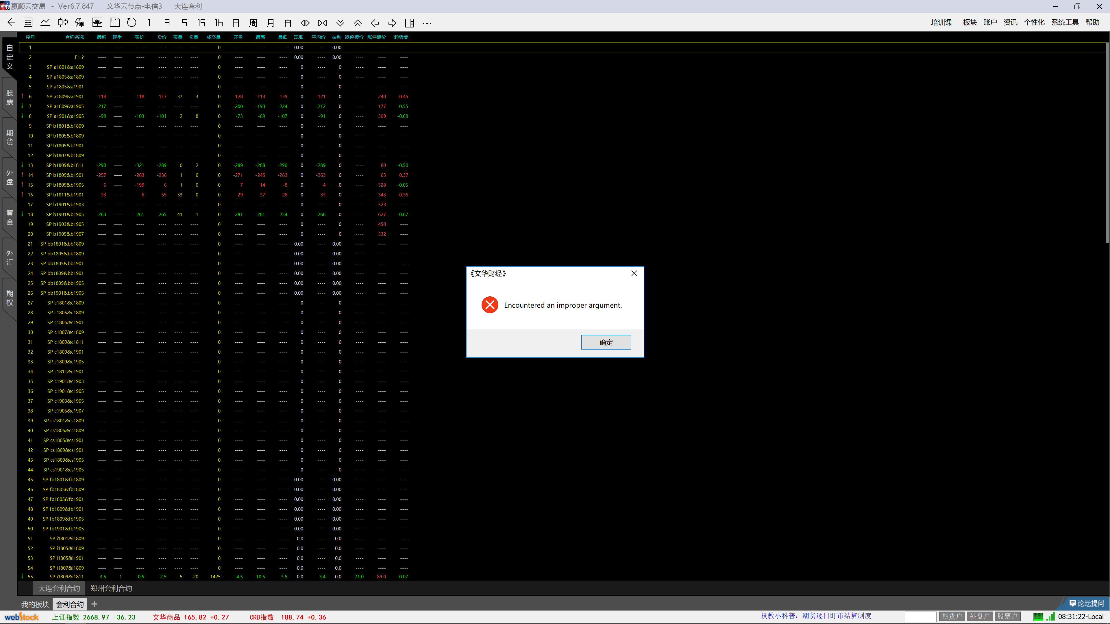 投资者咨询:encountered an improper argument ! 文华财经 (文华财经WH6赢顺V6.7)