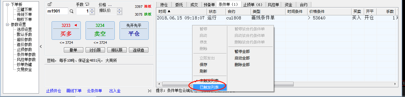 历史委托的未成交单子,请问在哪查询? (文华财经WH6赢顺V6.7)投资者咨询:历史委托的未成交单子,请问在哪查询? (文华财经WH6赢顺V6.7)来源:文华财经 日期:2018-8-17 21:31 历史委托的未成交单子,请问在哪查询?手机可以查,在交易日志中,PC端不知道怎么查?技术人员回复日期:2018-8-17 21:34 您说的是已经触发的条件单? 参考下图位置: