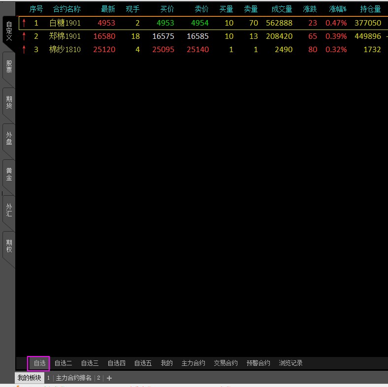 自选里面的排序怎么可以保持不变呢? (文华财经wh7睿期)投资者咨询:自选里面的排序怎么可以保持不变呢? (文华财经wh7睿期)来源:文华财经 日期:2018-8-17 11:45 有时候会看资金流向等等其他类别,会把本来拍列的适合自己的排序打乱了 技术人员回复日期:2018-8-17 13:19直接点击要恢复的自选板块的书签按钮就可以回复排序了,如图 或者快捷键60+回车 这个热键也可以恢复原始排序