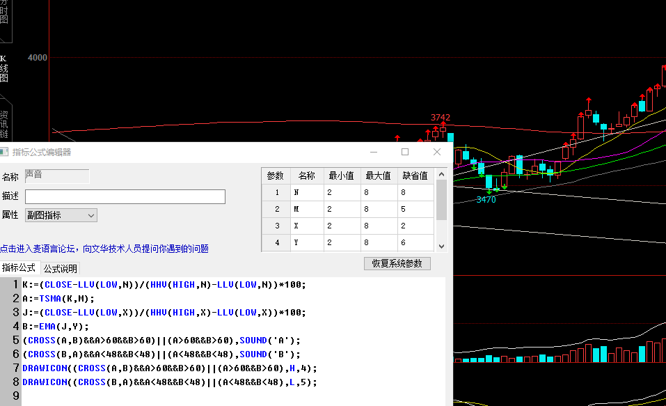 投资者咨询:老师帮忙修改一下,改成出箭头和声音提示,谢谢。 (文华财经WH6赢顺V6.7)