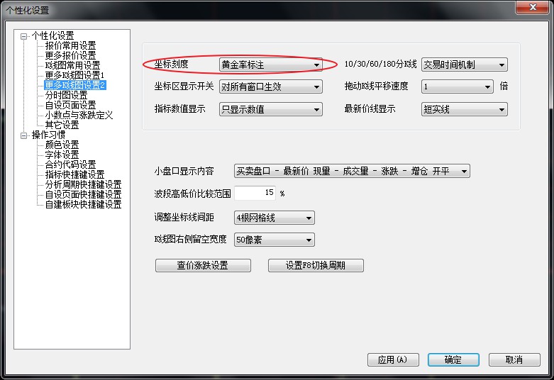 分时图里标有横线的价位 (文华财经WH6赢顺V6.7)投资者咨询:分时图里标有横线的价位 (文华财经WH6赢顺V6.7)来源:文华财经 日期:2018-8-31 11:06 请问老师,分时图里的黄金定律横线跟K线图里的有什么区别?分时图的横线跟那个周期的黄金定律线吻合?技术人员回复日期:2018-8-31 11:39 您指的是分时图的横坐标? 分时图的横坐标是根据选择的坐标范围自适应显示的,跟黄金分割线没有关系 分时图实际是1分钟k线的收盘价连线,您可以切换到1分钟k线,调整黄金率坐标查看 菜单 个性化》个性化设置