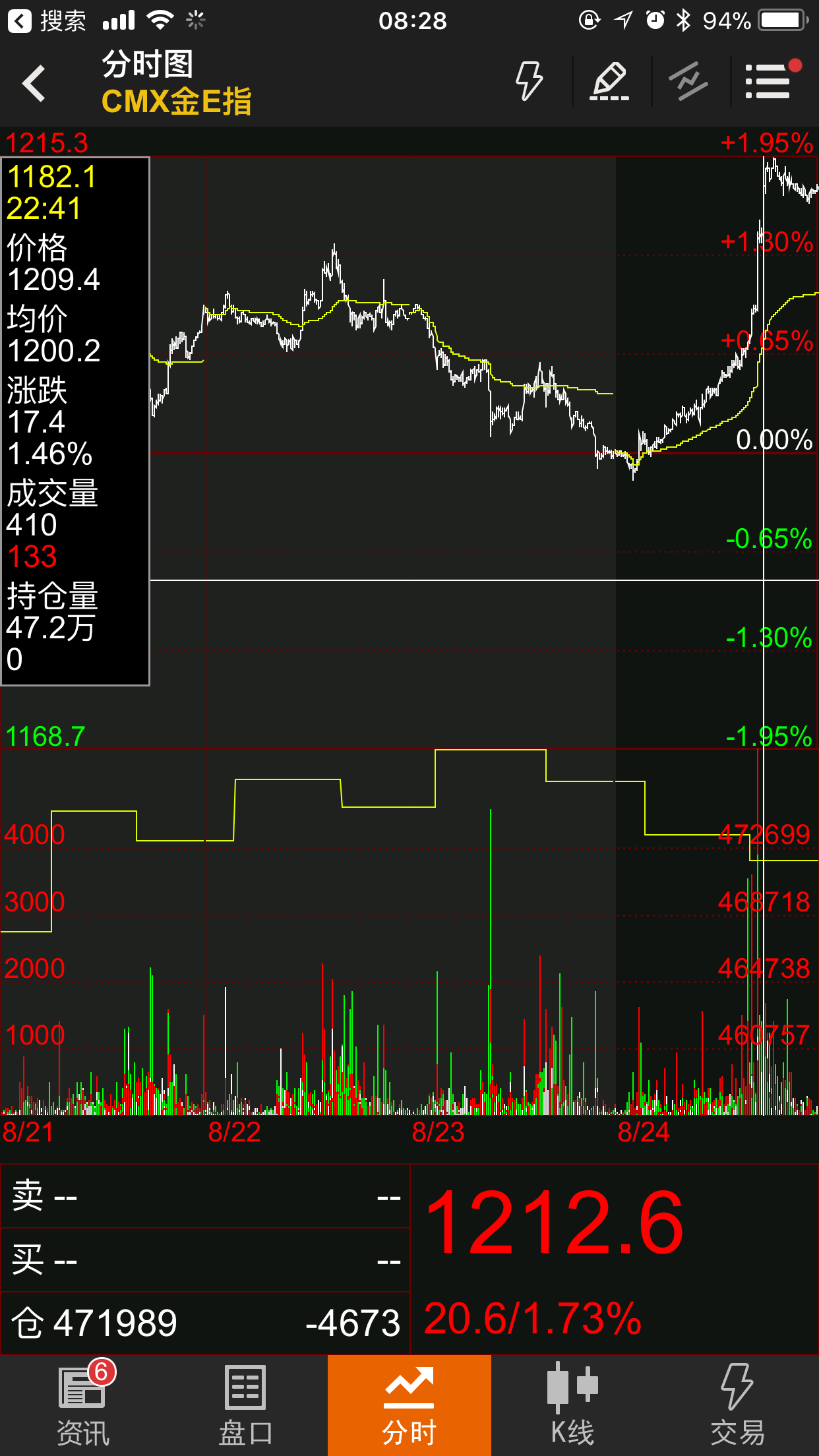 投资者咨询:成交量的黄色横线含义以及报警 (文华财经随身行iPhone 5.4.6)