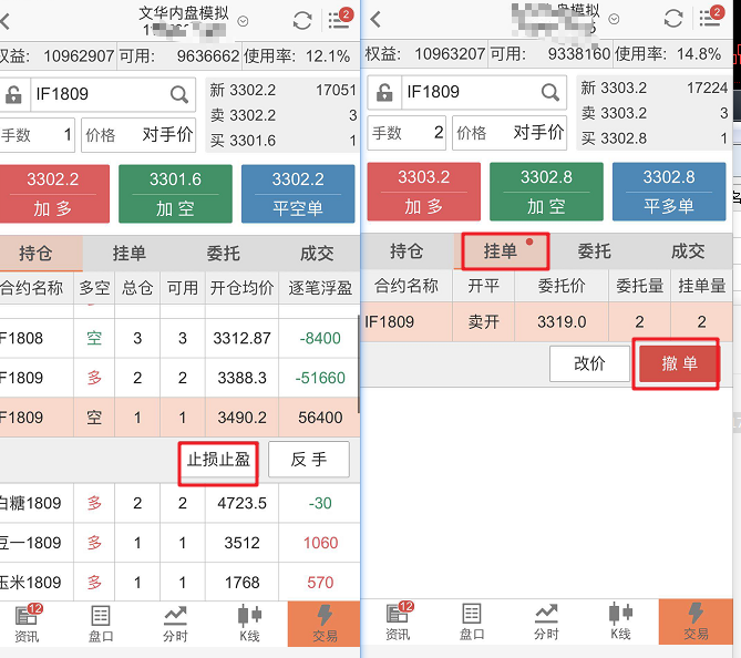 投资者咨询:随身行设置止损止盈 (文华财经随身行Android 5.4.6(239))