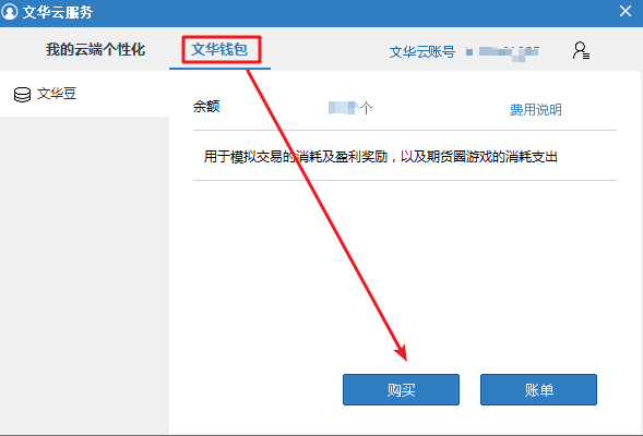 右上角菜单》系统工具》文华云服务,登录文华云账号,激活钱包,可先获得50文华豆,后续再点文华钱包进行购买