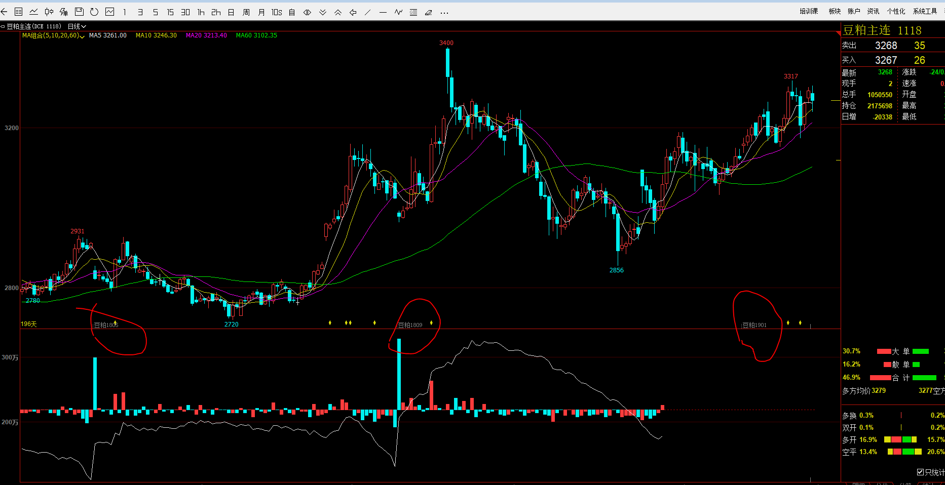无法预测什么时候以及那个合约会进行换月,判断不了您的说的“未成熟时候持仓,成交和价格”