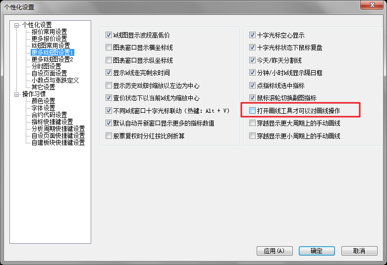 请教修改波浪尺问题 (文华财经WH6赢顺V6.7)投资者咨询:请教修改波浪尺问题 (文华财经WH6赢顺V6.7)来源:文华财经 日期:2018-8-16 9:49 修改波浪尺尺寸,为什么修改不了?技术人员回复日期:2018-8-16 9:57 您是要修改波浪尺的定位点? 选中波浪尺,直接拖动定位点就可以了 如果拖动不了,可能是您勾选了“打开画线工具才可以对画线操作”,软件右上角个性化》个性化设置,如图设置一下就可以了