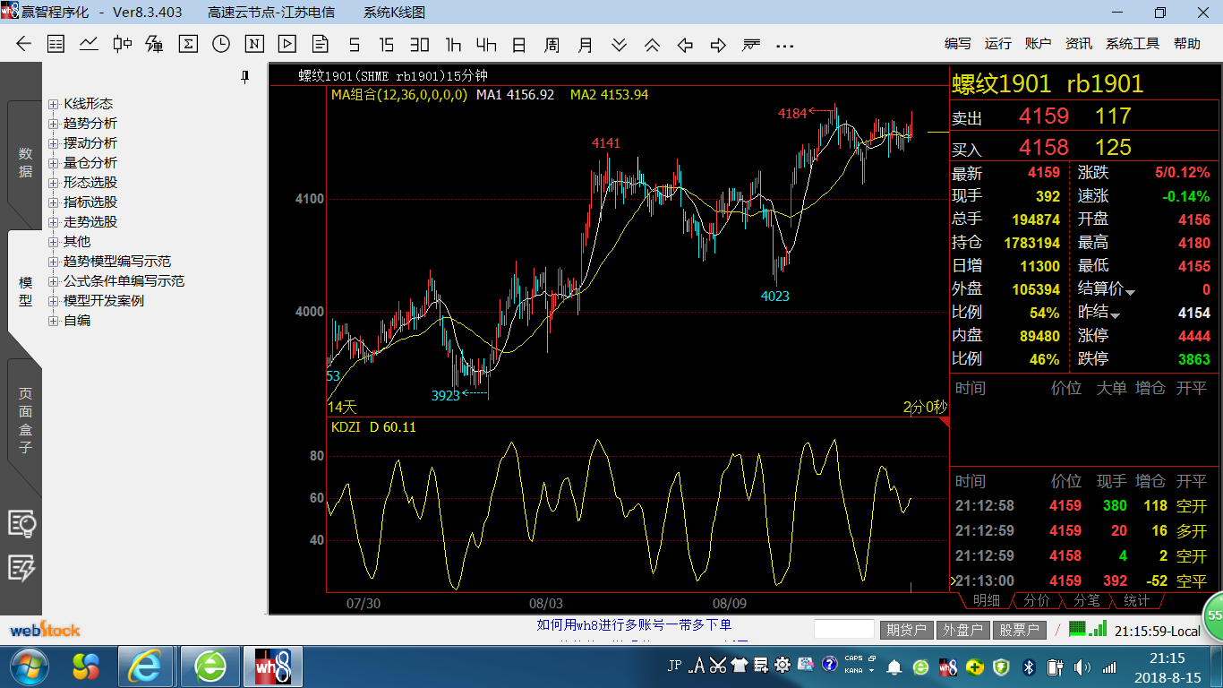 [原创]为什么wh8就显示 (文华财经WH8赢智V8.2)投资者咨询:[原创]为什么wh8就显示 (文华财经WH8赢智V8.2)来源:文华财经 日期:2018-8-15 21:17 刚才,wh6发了截图,k线和均线都不显示。但是我打开wh8就显示,看来不是移动玩咯问题。帮助解决一下。是哪里设置有问题吗?技术人员回复日期:2018-8-15 21:20 看了您的截图,是由于wh6软件环境损坏了,所以查看不了k线 您参考链接重新下载安装就可以了:http://www.wenhua.com.cn/ 注意不要覆盖安装,不要导入旧的个性化设置