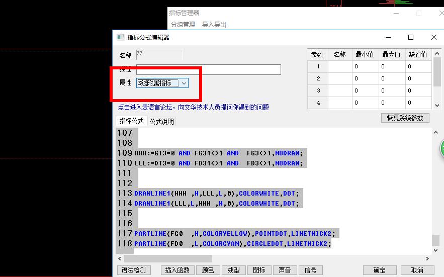 此外加载后不显示K线说明您属性选择有误,参考下图位置选择“K线附属指标”就可以