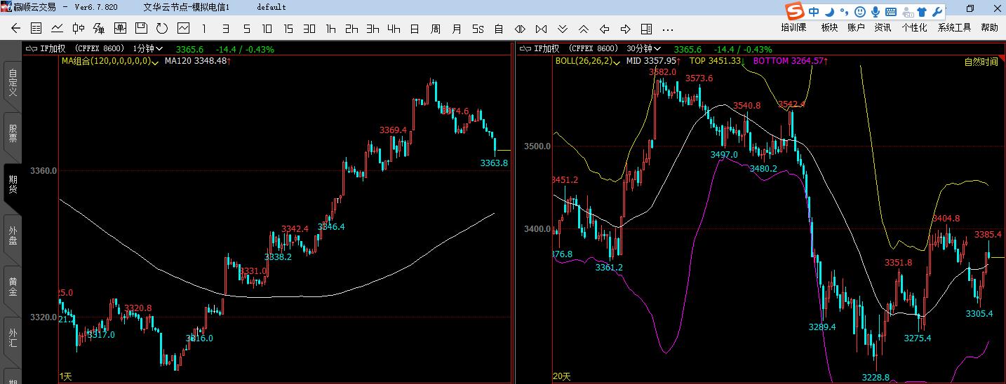 请教如何在1分钟图上显示30分钟布林线指标 (文华财经WH6赢顺V6.7)投资者咨询:请教如何在1分钟图上显示30分钟布林线指标 (文华财经WH6赢顺V6.7)来源:文华财经 日期:2018-8-13 23:12 请教如何在1分钟图上显示30分钟布林线指标技术人员回复日期:2018-8-14 8:08 wh6是专业的看盘软件无法直接跨周期引用BOLL线的 您的思路可以通过右上角》个性化》自设页面 创建一个多窗口的自设页面,分别插入1分钟K线图与30分钟K线图同屏显示,来看盘实现您了解一下投资者咨询:请教如何在1分钟图上显示30分钟布林线指标 (文华财经WH6赢顺V6.7)来源:文华财经 日期:2018-8-13 23:12 这不是应该能通过编程解决吗?技术人员回复日期:2018-8-14 10:24 无法通过编写实现的,您参考2楼回复理解一下