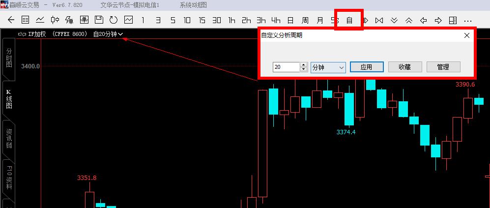 老师,您好,请教次主力合约 (文华财经WH6赢顺V6.7)投资者咨询:老师,您好,请教次主力合约 (文华财经WH6赢顺V6.7)来源:文华财经 日期:2018-8-13 11:52 1,我们的软件能不能识别次主力合约,也就是主力合约后面合约持仓量最大的,考虑写出函数 主力和次主力价格比较, 2,我们的软件可以显示20分钟周期吗? 技术人员回复日期:2018-8-13 13:251.次主力合约没有一个统一的概念,不同用户对次主力的定义不同所以软件没办法判断次主力合约的,您1楼的需求,可以通过抬头排序的方式手动来筛选您认为的次主力合约 然后通过创建多窗口的自设页面,分别插入主力与您筛选的次主力合约进行比对看盘 2.可以的,参考下图自定义周期创建20分钟周期的K线图来实现 文件名:111.jpg