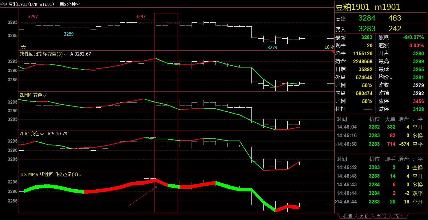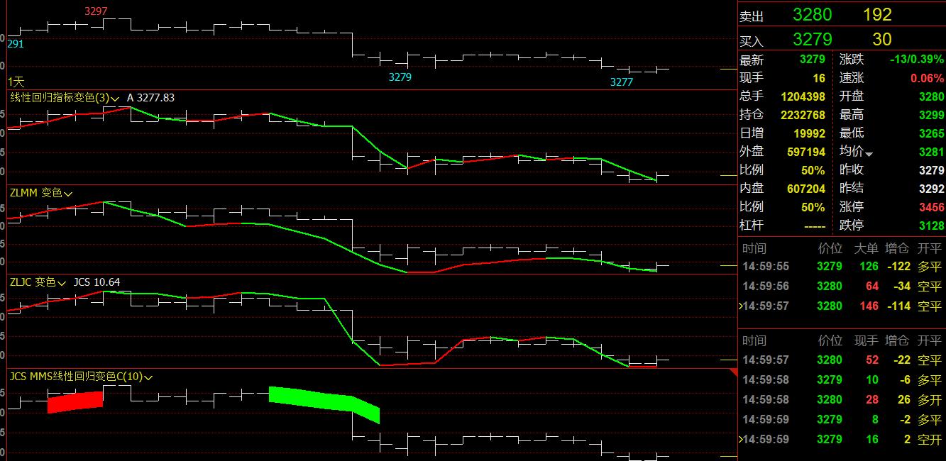 //欧阳老师好:JCS MMS MYFORCAST三个指标变色线同色共振取同色,