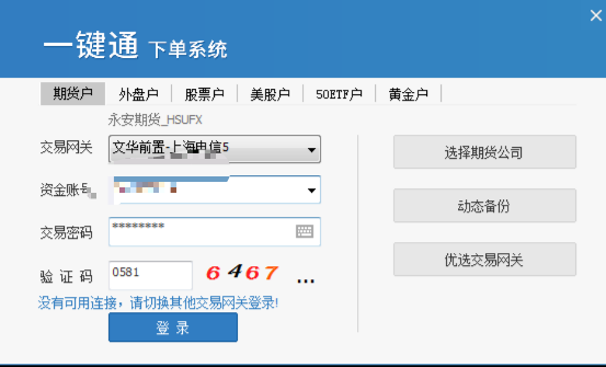 一直显示没有可用连接,换了很多网关也是 (文华财经WH6赢顺V6.7)投资者咨询:一直显示没有可用连接,换了很多网关也是 (文华财经WH6赢顺V6.7)来源:文华财经 日期:2018-8-13 8:37 技术人员回复日期:2018-8-13 8:44 永安期货现在是可以登录的,您遇到的这个提示跟本地网络不稳定有关系 登录页面优选交易网关,选择Ping值最小的网关登录不过还是要优化本地网络才能彻底解决,因为文华是金融软件,网络不稳定会影响到数据接收,也会直接影响到您的交易建议您重启路由器并且离路由器近点再尝试登陆看下,在南方到正规的电信营业厅办理电信宽带,链接电信的网关,效果就是最好的http://db.wenhua.com.cn/loginnews/bandwidth.asp