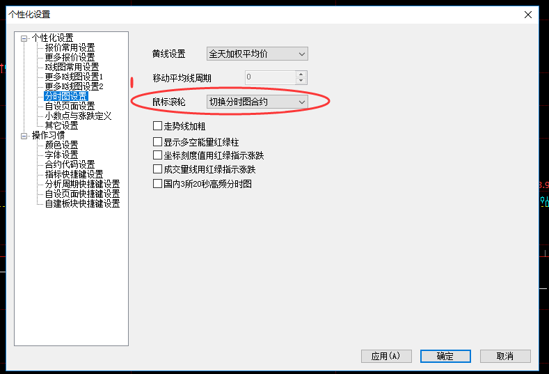 鼠标滚轮切换 (文华财经WH6赢顺V6.7)投资者咨询:鼠标滚轮切换 (文华财经WH6赢顺V6.7)来源:文华财经 日期:2018-8-30 13:27 鼠标滚轮在个性设置里设置成切换K线图合约后,为什么在K线时可以切换成其他合约,而在分时江波图中是缩放模式呢,怎么解决成不论是K线图还是分时江波图都切换为其他合约技术人员回复日期:2018-8-30 13:29 可以设置的,参考下图修改下: 投资者咨询:鼠标滚轮切换 (文华财经WH6赢顺V6.7)来源:文华财经 日期:2018-8-30 13:27 没有这个选项技术人员回复日期:2018-8-30 21:16 菜单 帮助》升级,升级新版体验就可以了