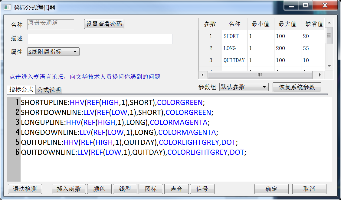 投资者咨询:[求助]请帮我改编一下唐奇安趋势指标 (文华财经WH6赢顺V6.7)