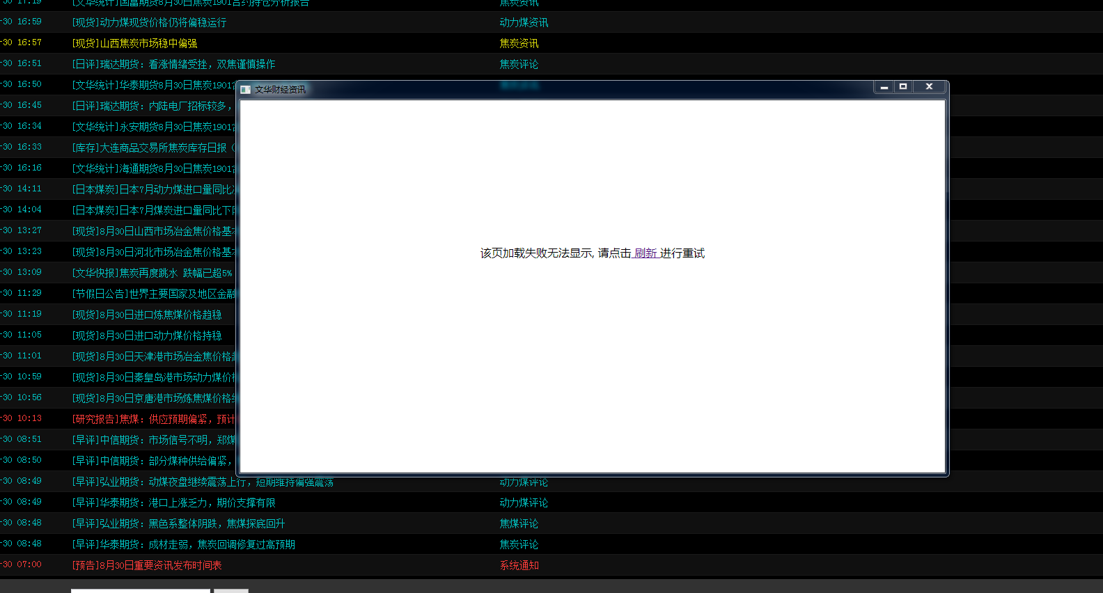 截图反映软件问题 (文华财经WH6赢顺V6.7)投资者咨询:截图反映软件问题 (文华财经WH6赢顺V6.7)来源:文华财经 日期:2018-8-30 17:39在“24小时资讯”栏目中,打开资讯,弹出页面加载失败无法显示 文件名:screenshot20180830173736.png技术人员回复日期:2018-8-30 17:42 近期访问量较大,我们也在调整优化,稍后您多试几次看下