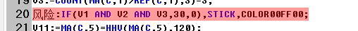 风险:IF(V1 AND V2 AND V3,30,0),COLORSTICK,COLOR00FF00;